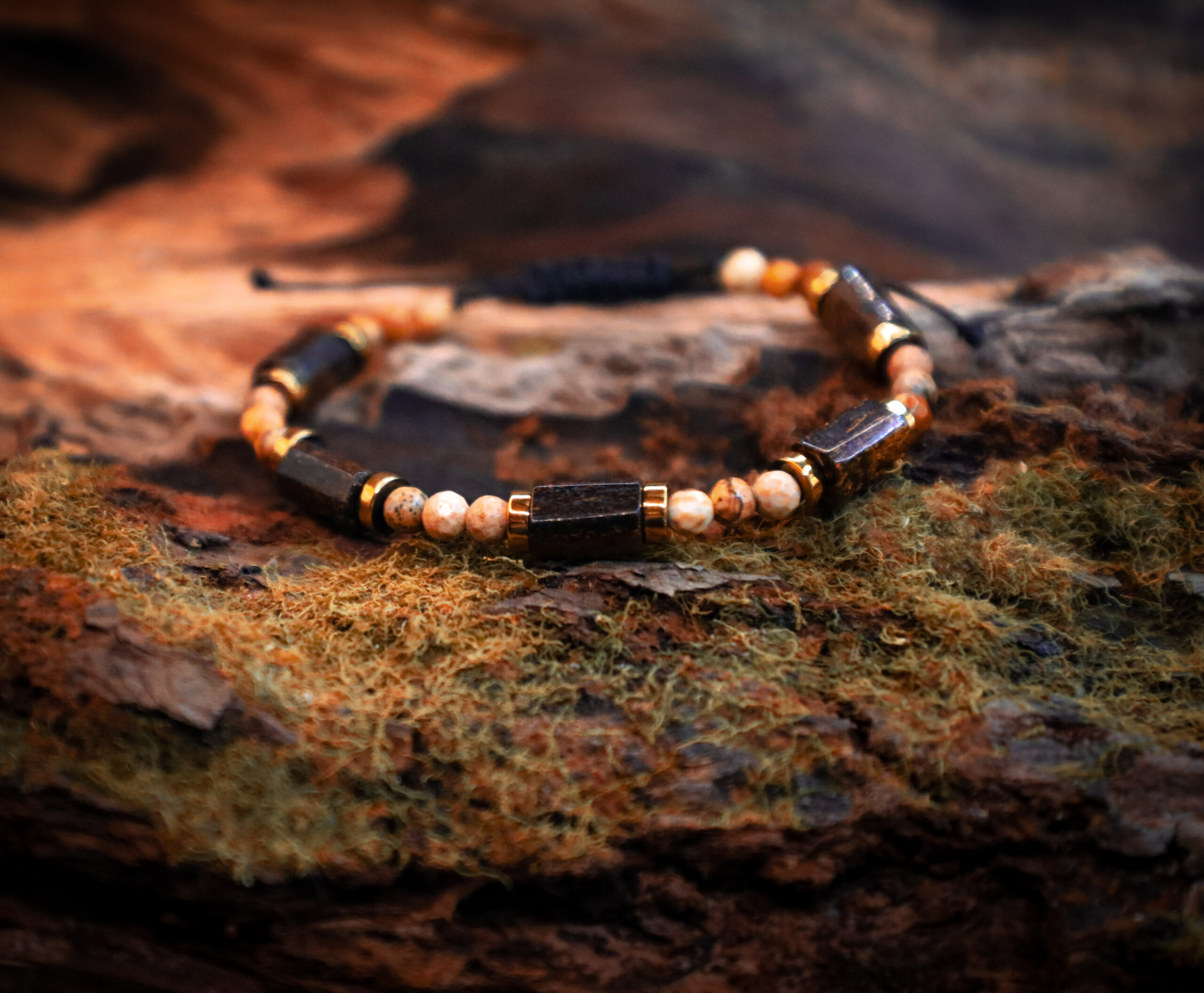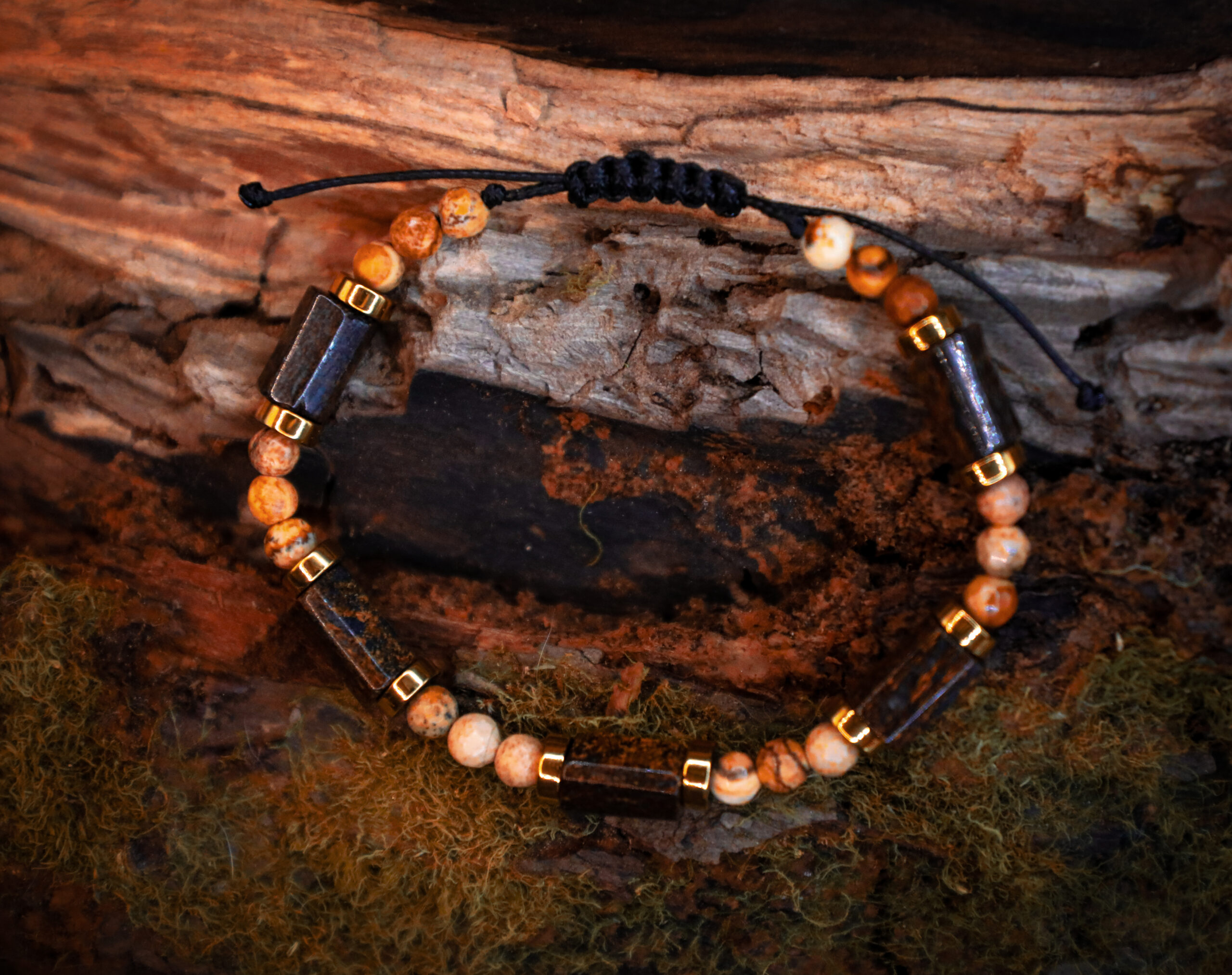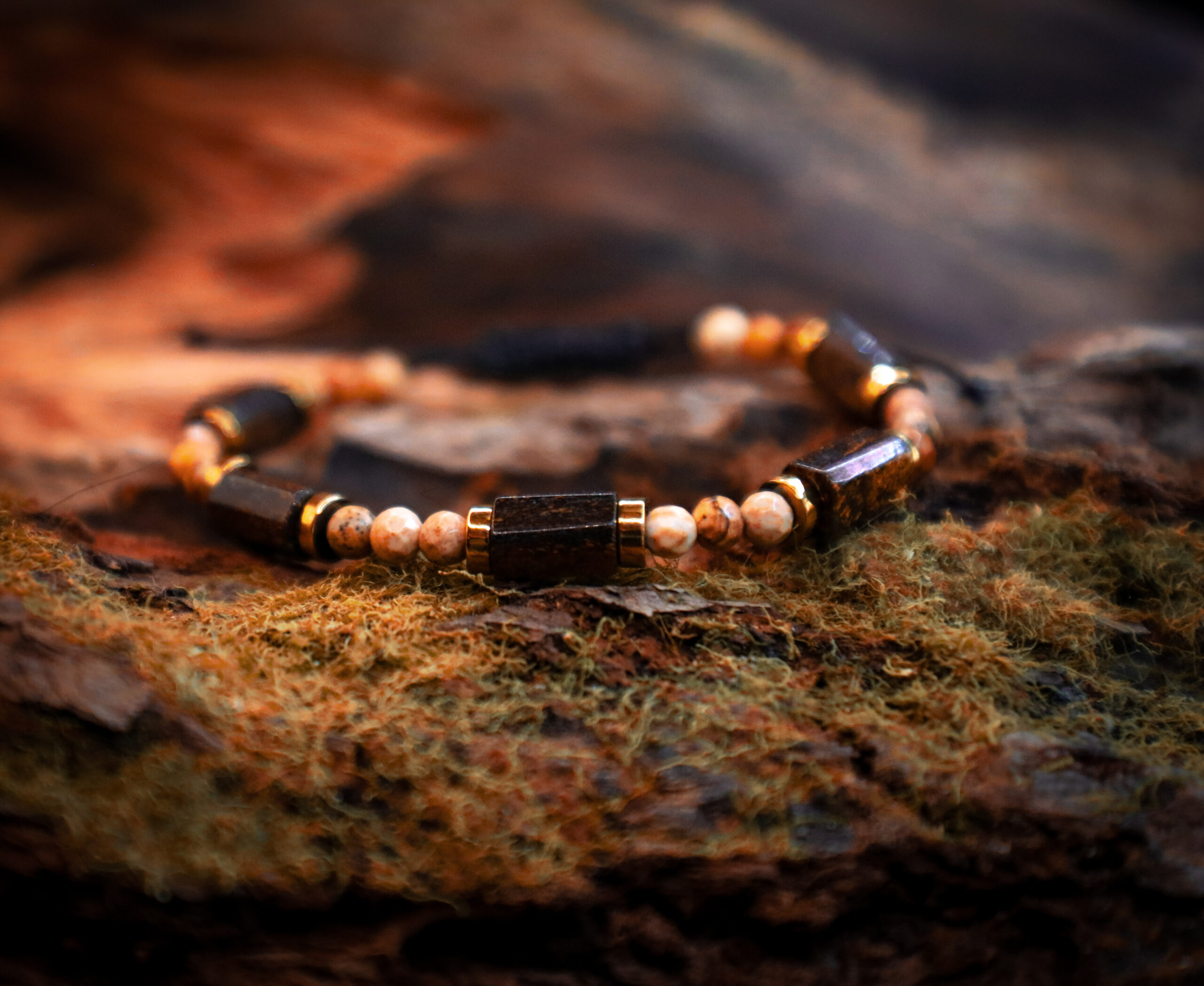 Połączenie bronzytu i jaspisu tworzy silną, ochronną bransoletkę dla osób potrzebujących wewnętrznej mocy i wytrwałości. Wspiera w trudnych decyzjach, dodaje odwagi i pomaga zachować spokój w burzliwych chwilach. To duet stabilności, siły i wewnętrznej harmonii.