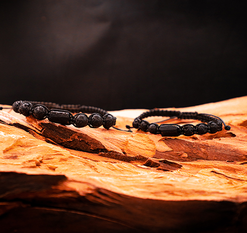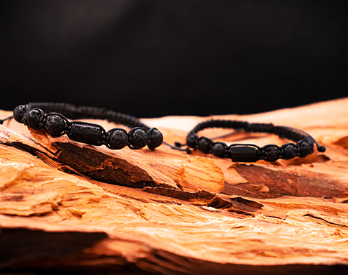 Komplet 2 plecionych bransoletek ochronnych: męska i damska- czarny turmalin i lawa wulkaniczna.