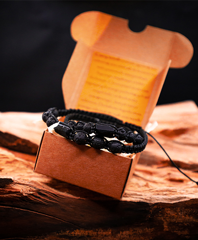 Bransoletki regulowane. Bardzo mocne. Plecione techniką makramy. Kamienie nawleczone na mocny, woskowany sznurek jubilerski. Średnica kamieni bransoletki damskiej lawa: około 6mm, średnica kamieni bransoletki męskiej lawa: 8mm. Bransoletka zapakowana w ekologiczny kartonik z wypełnieniem i opisem właściwości kamieni. Gotowa do wręczenia na prezent.