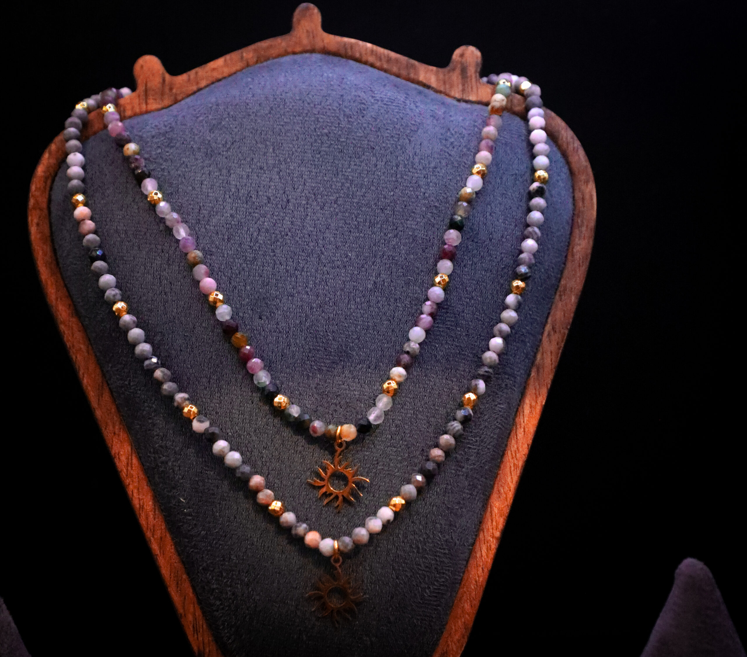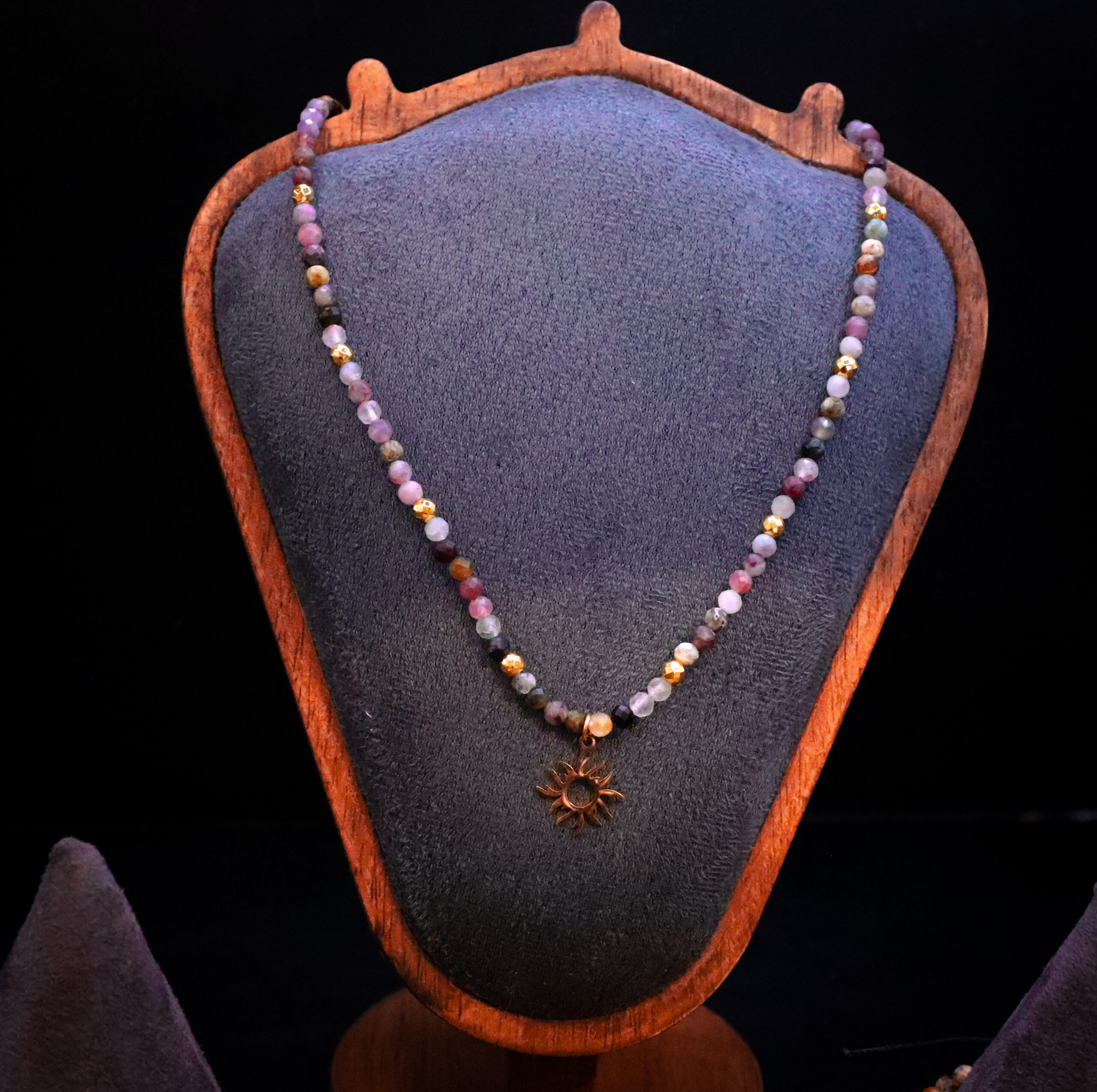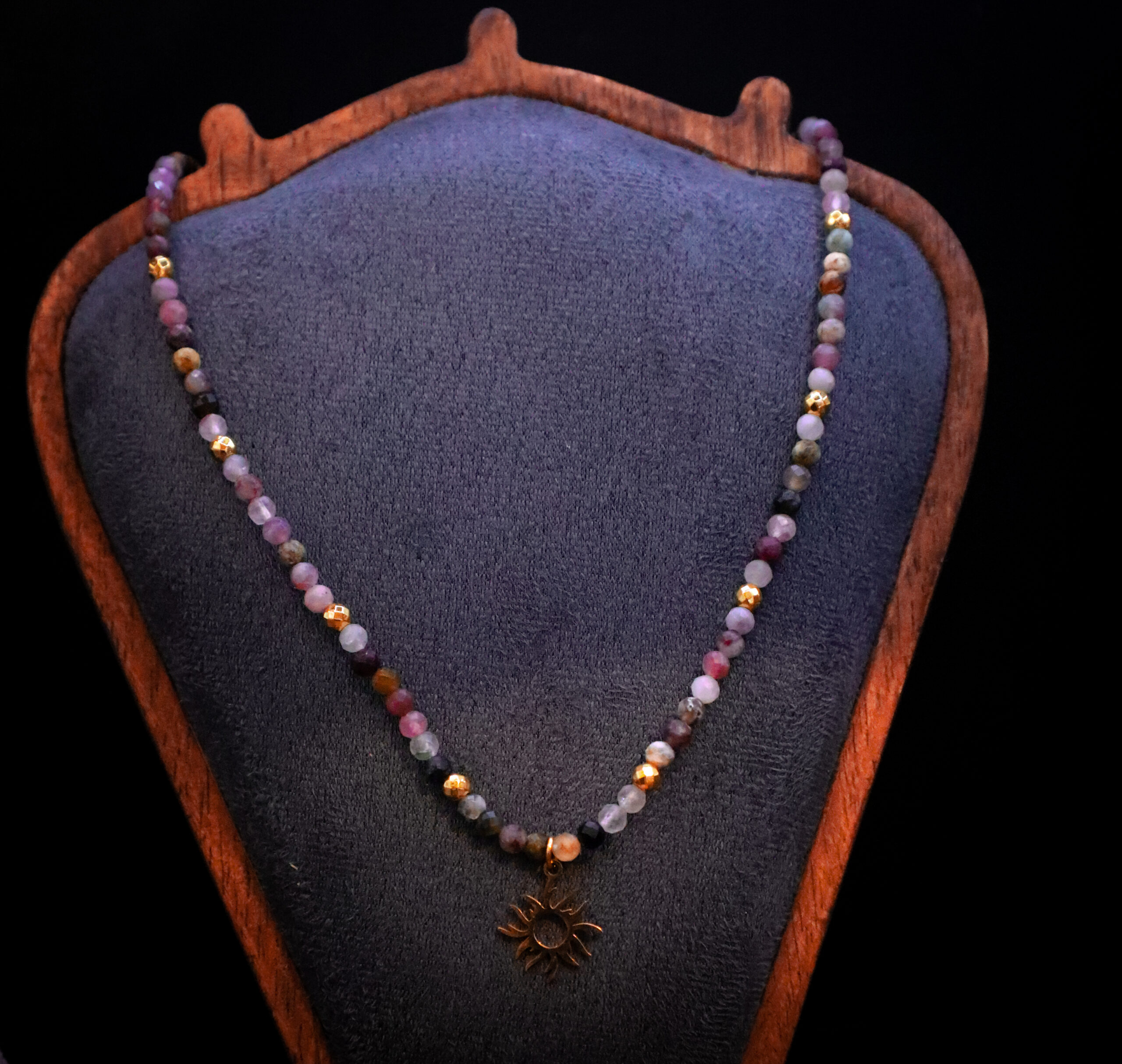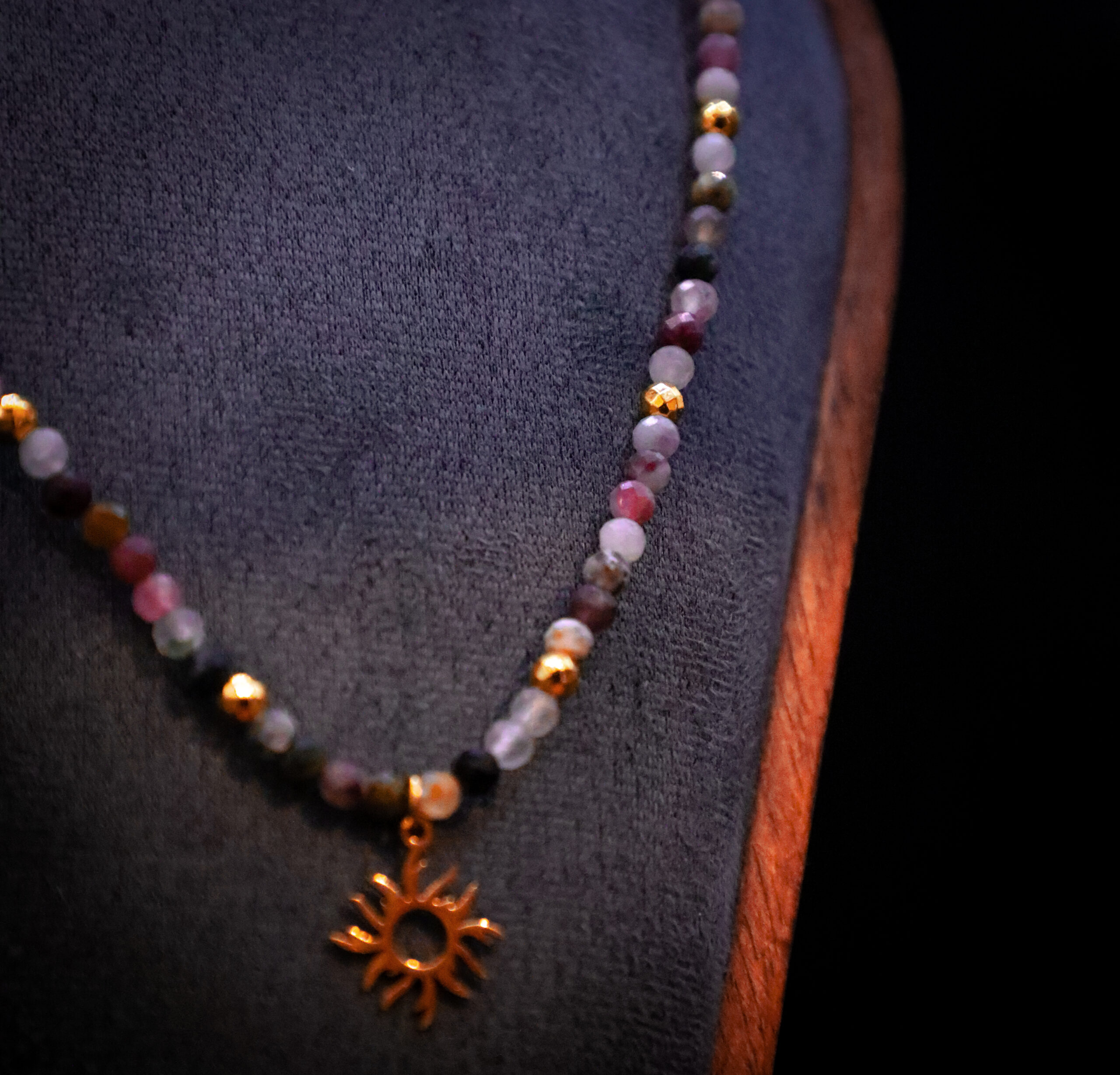 Ten naszyjnik to talizman harmonii i wewnętrznej ciszy. Powstał z trzech rodzajów turmalinu, które jak trzy żywioły spotykają się, by prowadzić Cię ku ochronie, równowadze i spokoju.